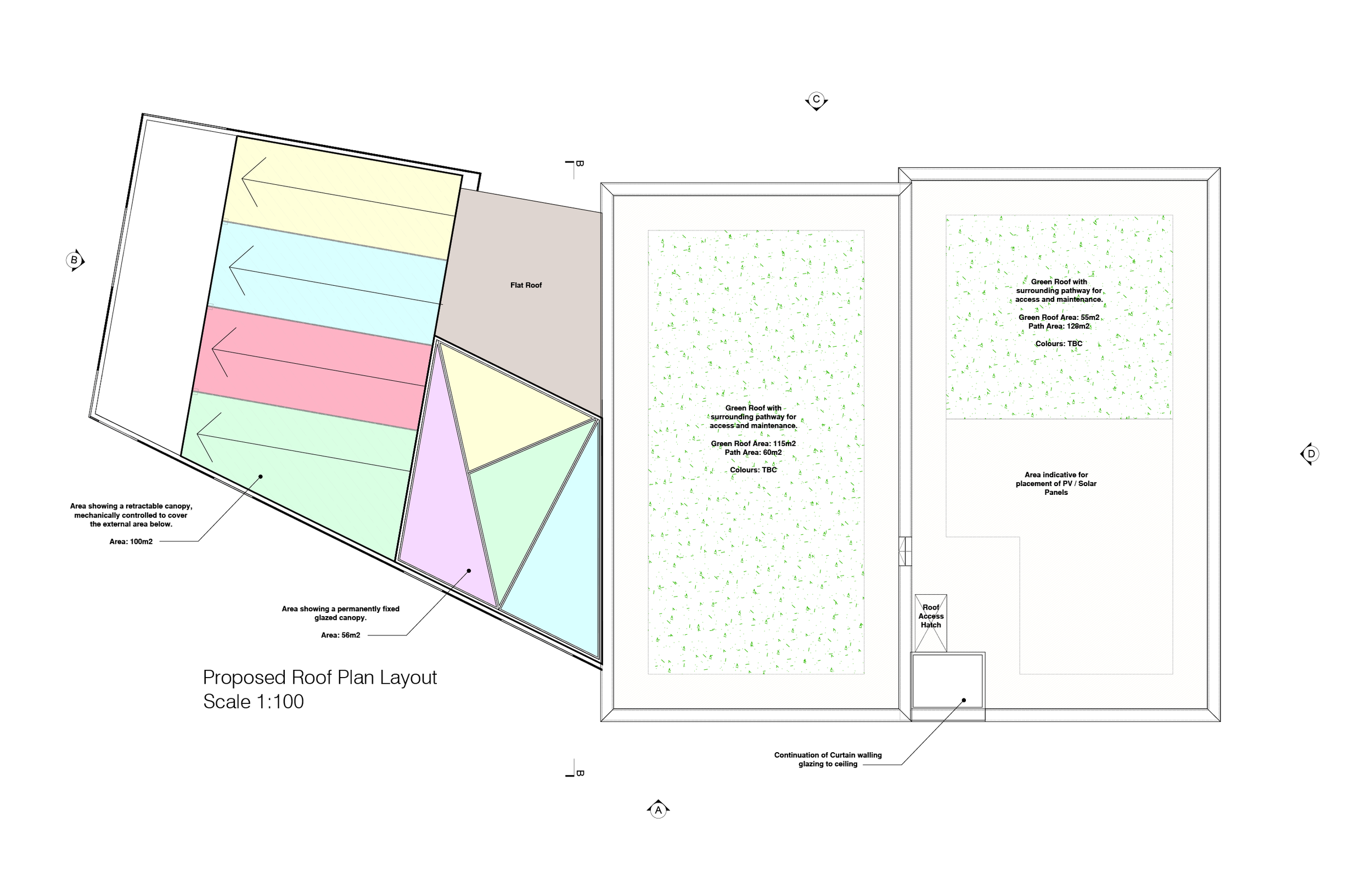 Built upon these key requirements, the design itself makes use of a vibrant palette of materials, from building materials to high-quality landscaping, including paving and street furniture. Feature gates and canopy will be developed to create a semi-enclosed public realm space for use as event space all year round. The vitality of the scheme will reflect the beating heart of the Bogside as a beacon in its own right, when viewed from the Derry City Walls.